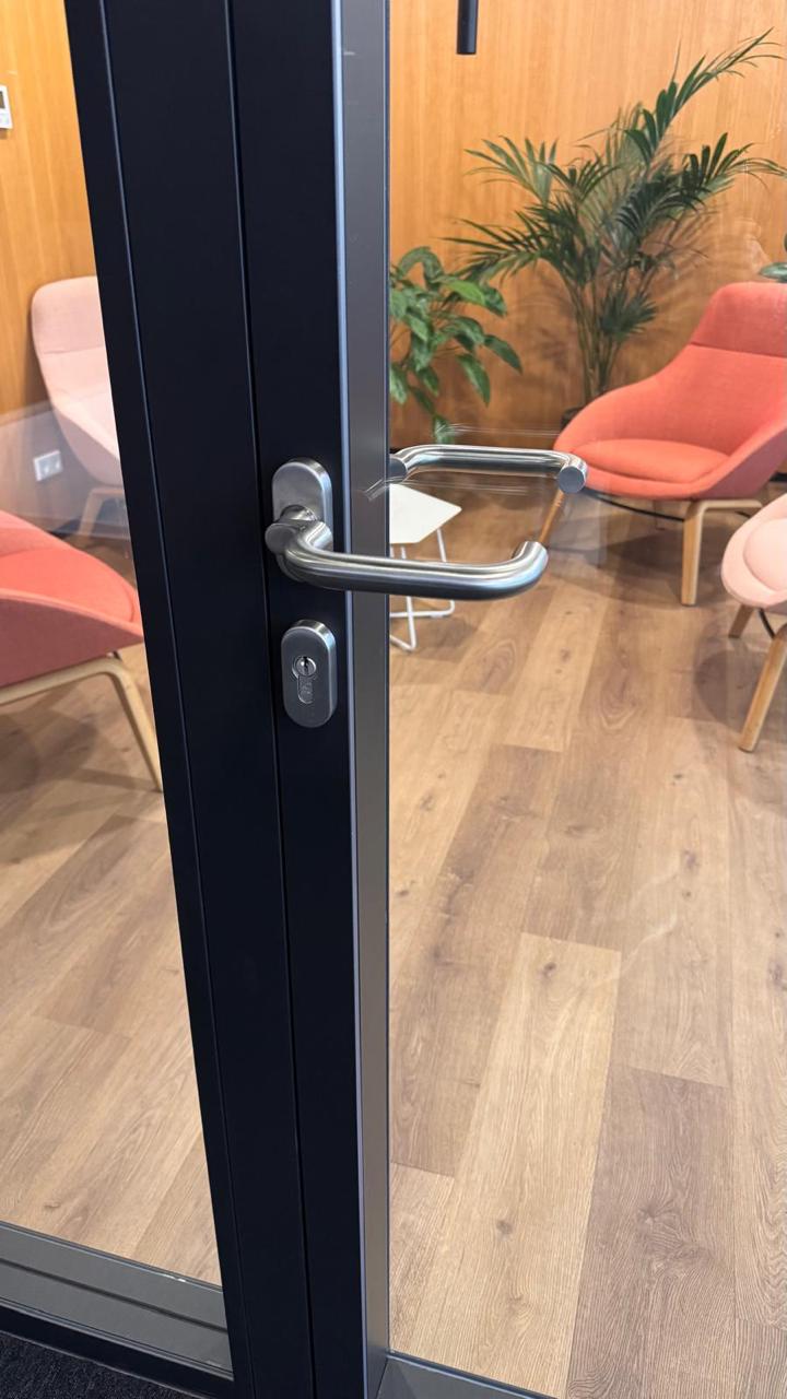 - Ideal für Büros, Besprechungsräume, Bildungs- und Institutionseinrichtungen. Die Doppelverglaste Rahmentür bietet Privatsphäre, Qualität und Stil in einer modularen Lösung.